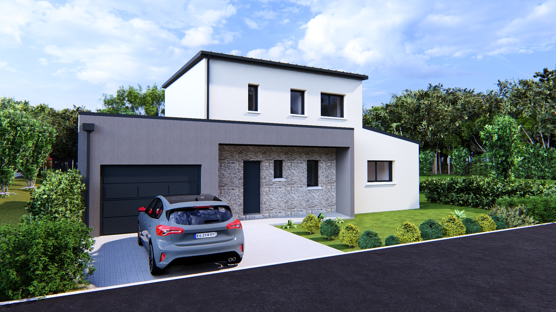 Maison Contemporaine 2 Étages avec Parement Pierre