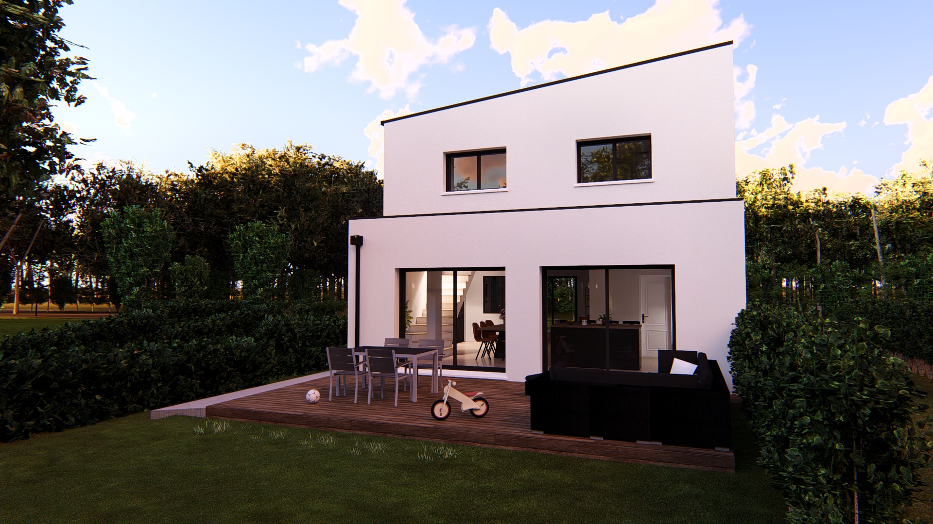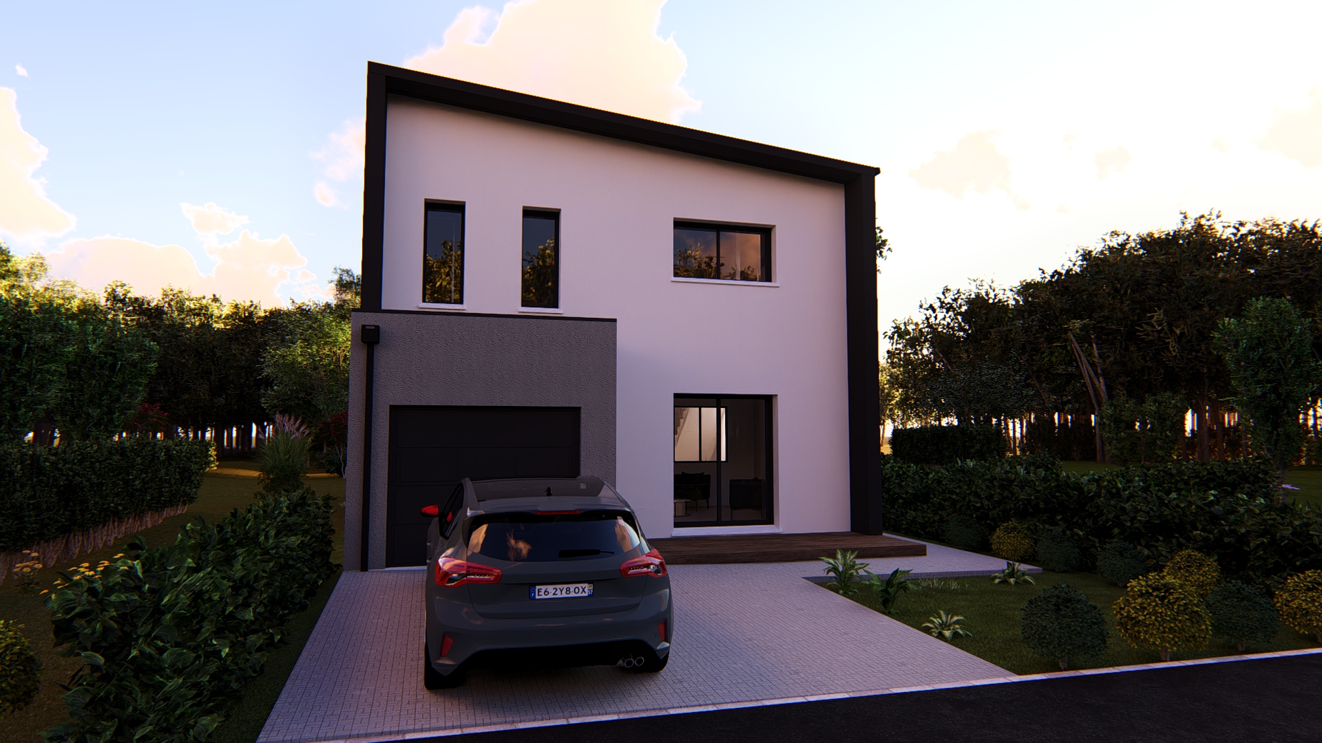 Maison contemporaine cube avec garage : un projet clair, maîtrisé et bien entouré